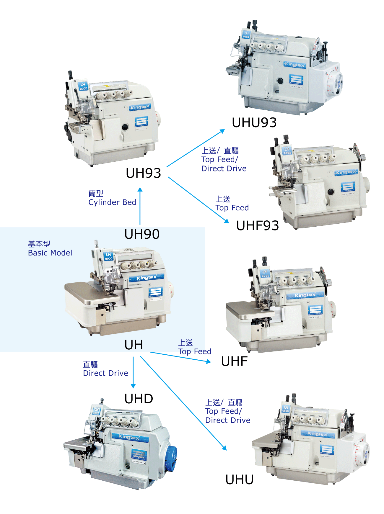 Model | Flat bed | Extra Heavy | Cylinder bed | Direct Drive | Top Feeding |
