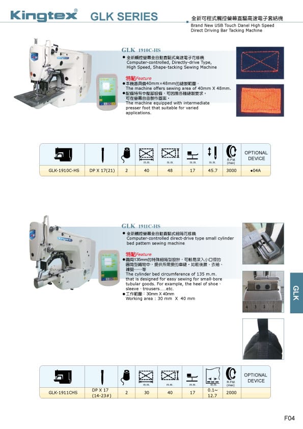 The cylinder bed circumference of 135 m.m. that is designed for easy sewing for small-bore tubular goods. For example, the heel of shoe、sleeve、trousers……etc.