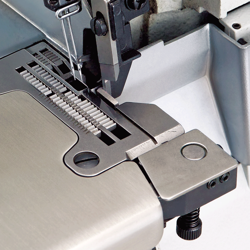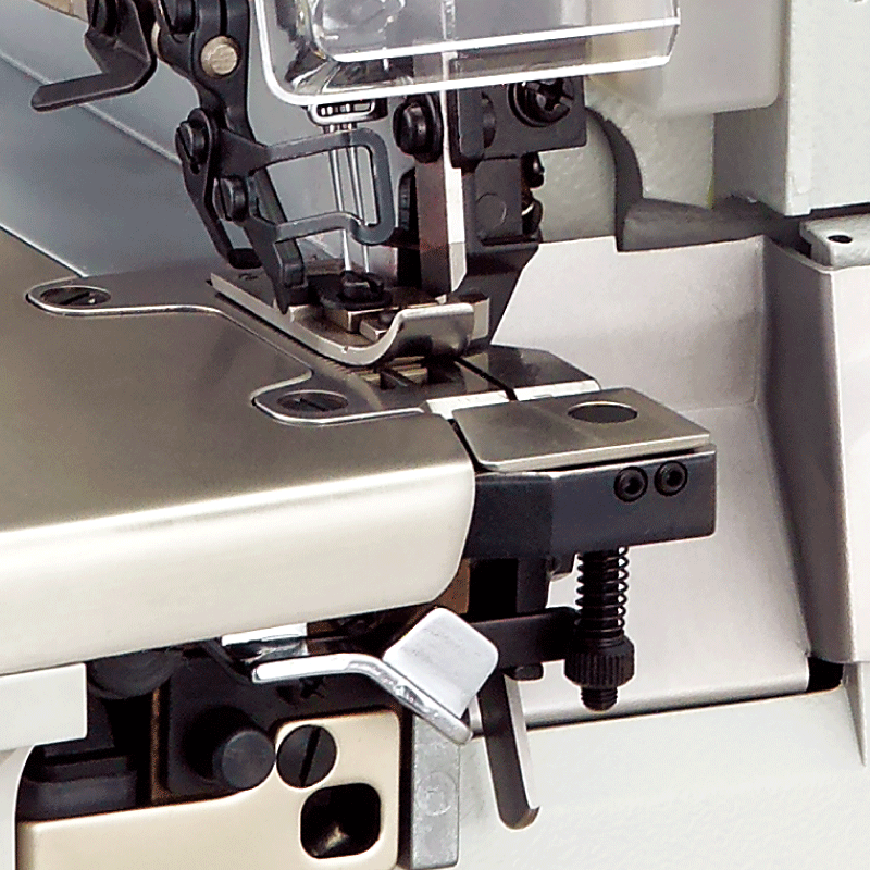 說明:在每次車縫開始時,將預先夾住的線頭,包入一段於底線中,車縫後再將線拉回,在BT 裝置中剪斷並夾住。有BT084與BT086可供選擇,對應不同的車縫手勢。放鬆針線。