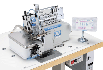 在縫製 T 恤袖口工程時,可自動將線頭包在線跡中,用於中厚類布料。