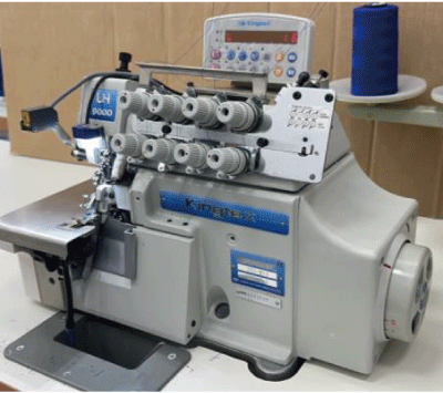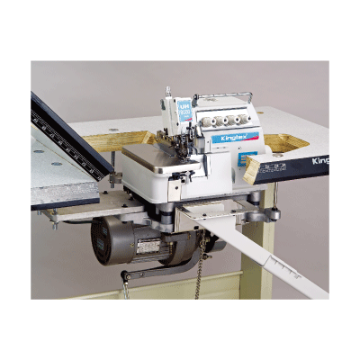 • SBL: 半自動式,以電眼感測布邊,後切刀自動切線,針板內有吸線管道,可將線頭下折吸入,包線頭長度固定,約3cm。