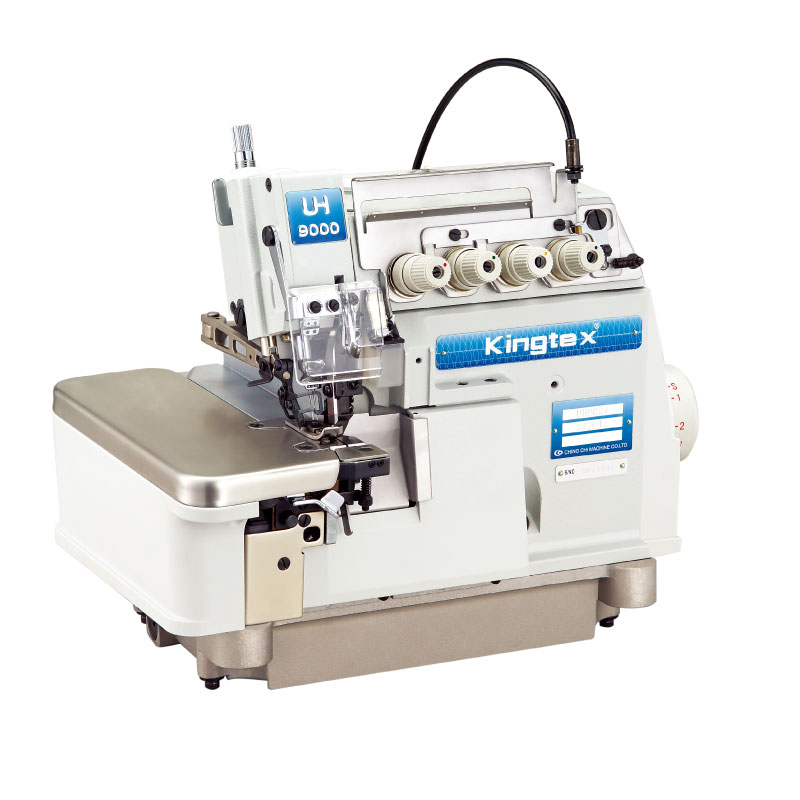 • SBL: 半自動式,以電眼感測布邊,後切刀自動切線,針板內有吸線管道,可將線頭下折吸入,包線頭長度固定,約3cm。