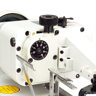 - 說明:EF裝置以皮帶與主軸連動,可調整齒輪箱以輸出適當送帶量,產生所需的鬆緊帶張力。EF006適用下掛式馬達。EF007適用直驅式馬達。