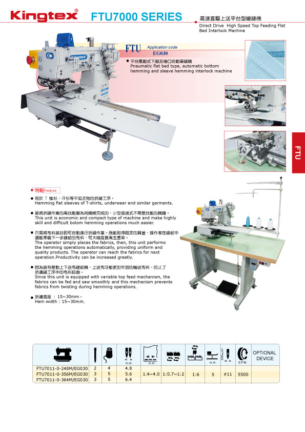 用於 T 恤杉、汗杉等平坦衣物的折縫工序。