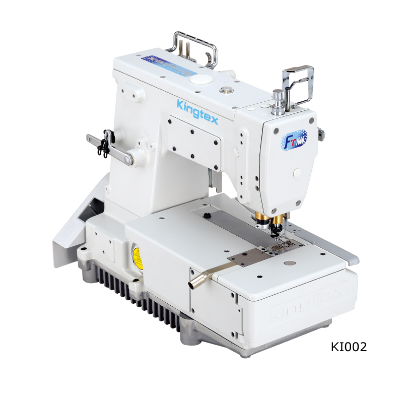 - 搭配吸風馬達或空壓設備,將線環吸入切刀槽內切斷。特殊設計的針板,與切刀組互相嵌入,車縫完畢時,線環隨即被吸入切刀口,操作順手效率高,並大幅節省用線量。
