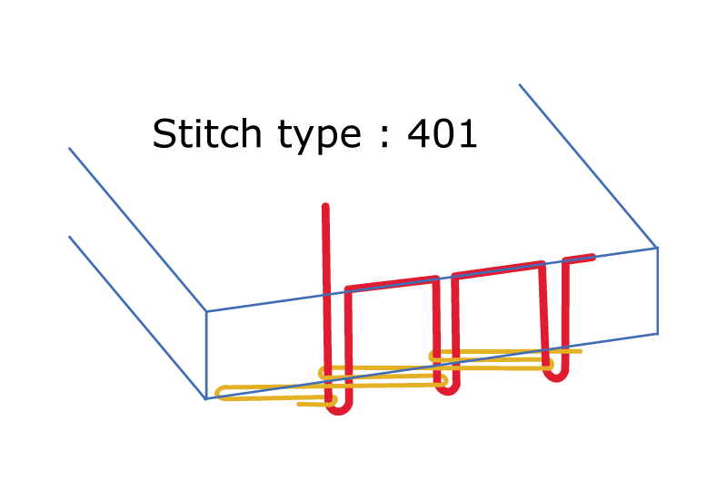 基本型,以面線(針線)與底線(勾針線)結合成為線跡,可選配附件以進行多種樣式車縫。