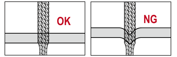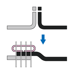 - 雙切布片在疊合時,因布料條件(厚度,彈性…等),需有對應的壓腳溝槽,壓腳鞋,壓腳舌,切刀,中分規…等配套,以順暢完成車縫。