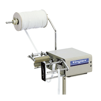 TFU ・[圖]上送型 ・[說明]在鬆緊帶或針織布帶進入張力控制裝置之前,確保其無張力狀態 ・[最大適用寬度]70mm ・[適用機型] UH9004-243E, UH9083, UH9084, UH9094, FT7069, FT7002