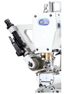可依裁片之不同質料,選擇使用塑膠齒狀滾輪或橡膠平面滾輪。車縫彈性較大之裁片,如鬆緊帶,建議使用齒狀滾輪;車縫彈性較小之裁片,如一般布料,建議使用橡膠平面滾輪,可避免齒痕。