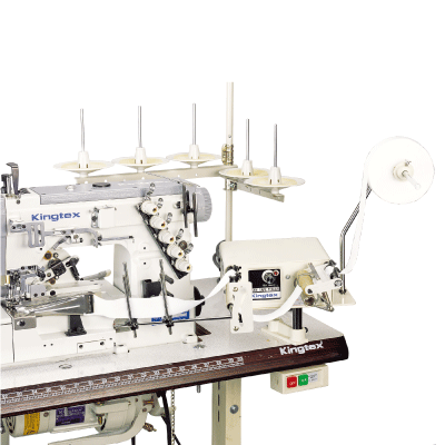 - 在鬆緊帶或針織布帶進入張力控制裝置之前,確保其為無張力狀態。