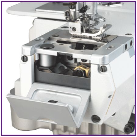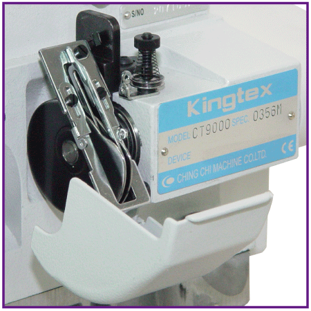 With direct drive design. Mini servo motor is integrated with machine, mounted in side of the machine arm. Upper main shaft is driven directly by the mini servo motor, no motor belt is needed. (CTD/ CXM series)