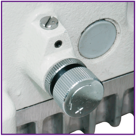 Bộ điều chỉnh độ dài mũi may dạng nút nhấn.