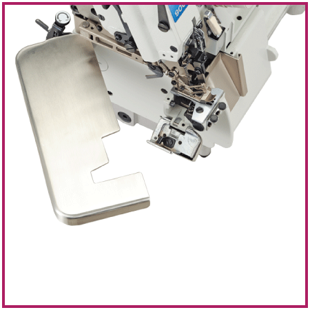 Có thể tăng diện tích làm việc của máy bằng cách lắp thêm nắp bàn vải tùy chọn. Việc lắp đặt và tháo gỡ rất đơn giản. Một máy có thể được sử dụng cho nhiều loại công đoạn khác nhau, chẳng hạn như may gấp lai dưới hoặc may thẳng thông thường.