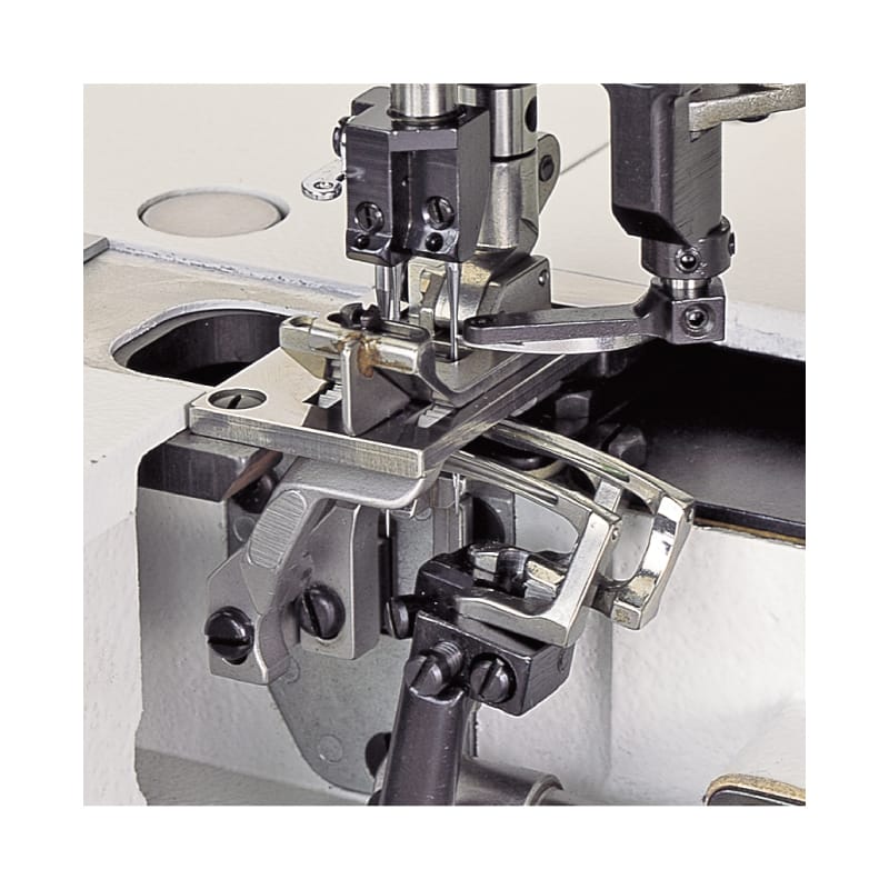 • Máy được trang bị 3 cặp kim và móc. Kiểu mũi khâu là 3 mũi xích kép và 1 mũi chỉ bao phủ, phù hợp để may viền túi bên của quần Jeans và quần tây.