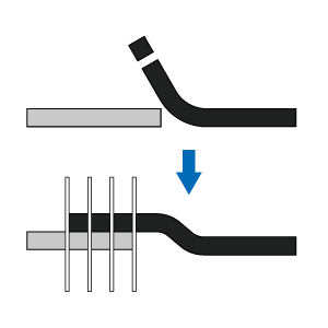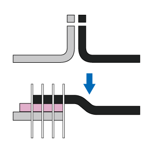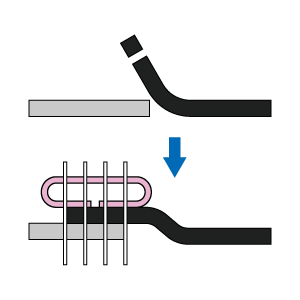 Khi chồng 2 lớp vải đã cắt, do đặc tính của vải (độ dày, độ đàn hồi…, v.v.), cần có các rãnh chân vịt, đế, lưỡi, lưỡi dao, lưỡi vắt sổ…, v.v. tương ứng để đường may được trơn tru.