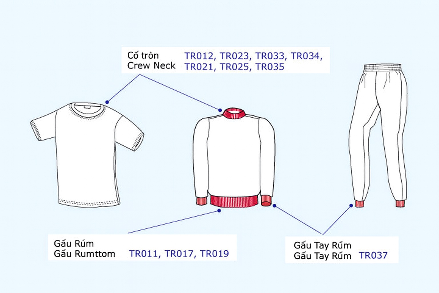 TR011, TR017, TR019, TR012,TR023,TR033, TR034