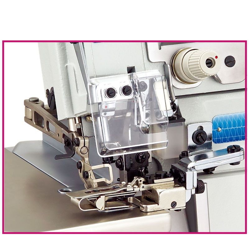 关于T恤衫的袖口折缝,儿童服装的袖口……等,都能简单处理好,亦在筒座周围无障碍物,在落针处的右侧设有10mm的空间,可以装配各种装置。手帕、头饰、丝巾、袜子等。